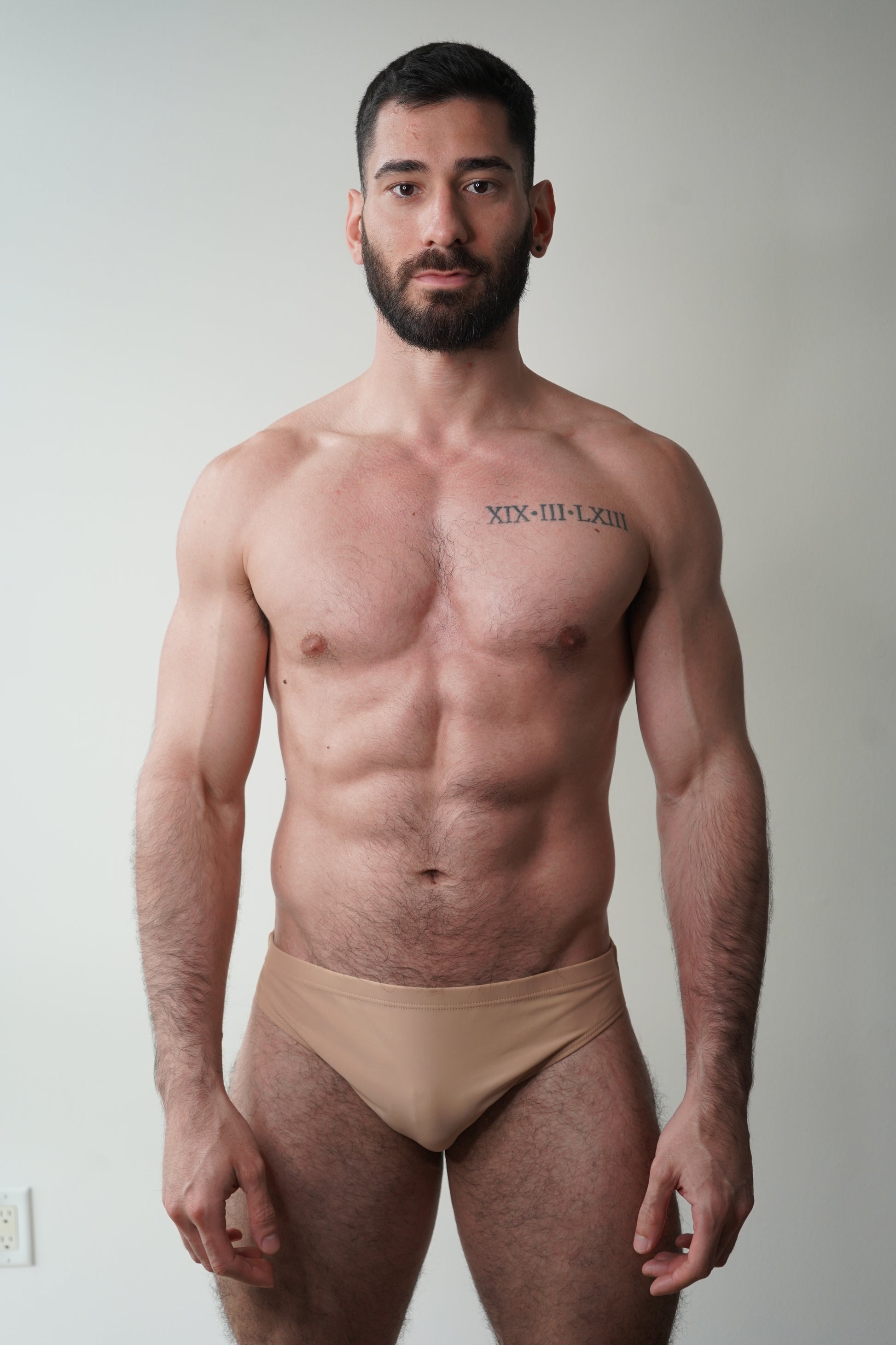 In a stunning beige hue, this swim brief seamlessly melts into your body, offering a fit that feels as natural as your own skin. Crafted from premium materials, it promises superior comfort and an exquisite look. The model in the photo is 6'2, 190 lbs, waist size 33 wearing size L.