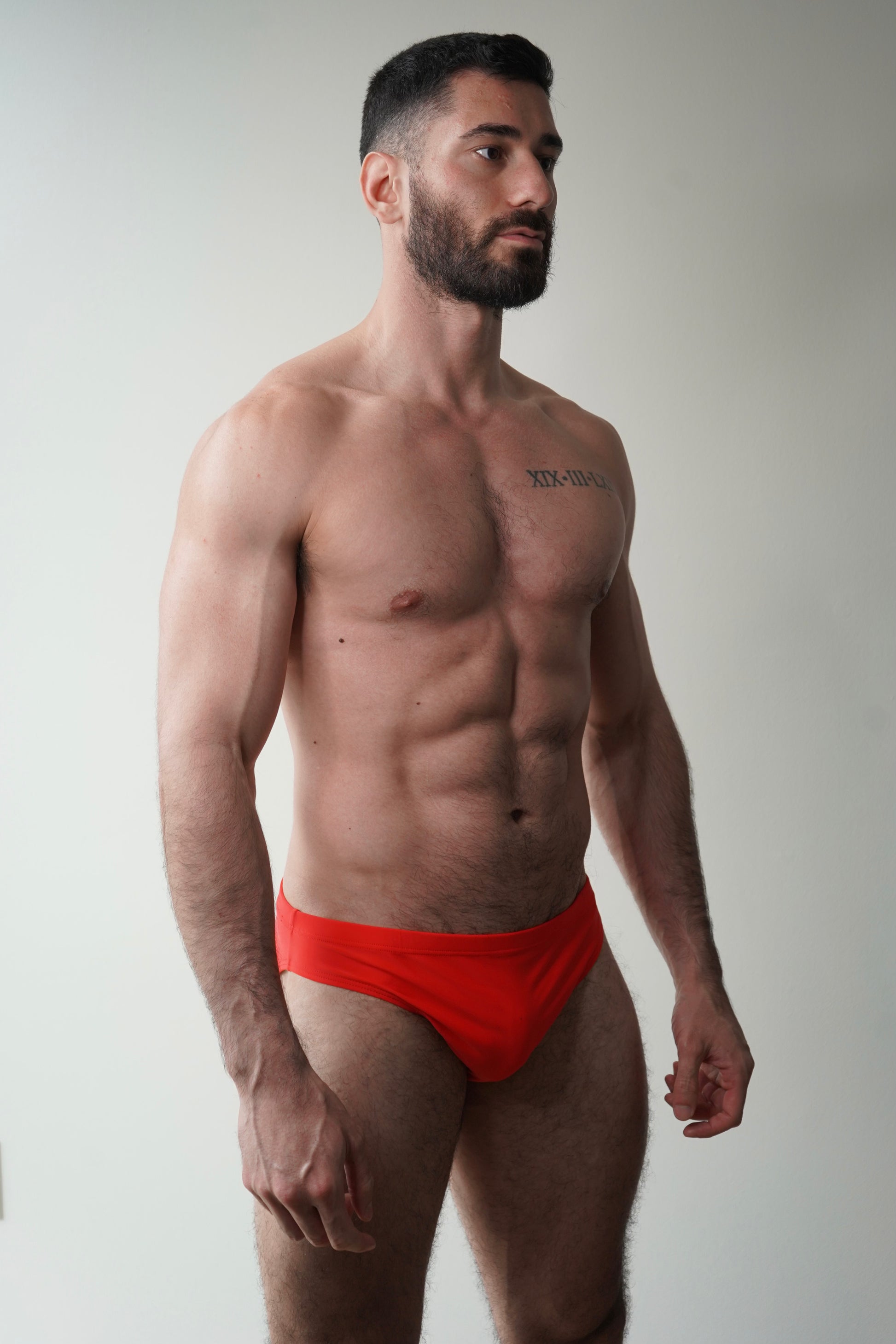Get your butt into our swim brief! With a comfortable low-rise fit, you'll be feeling confident in your your go-to swim brief for endless beach days and poolside lounging. With its eye-catching scarlet hue this brief is all about making waves and turning heads. Get ready to make a statement and feel amazing while doing it. The model in the photo is 6'2, 185 lbs, waist size 33 wearing size L.